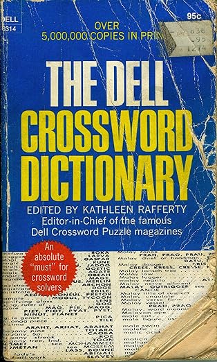 My first crossword memories are solving puzzles in Dell crossword books with my grandmother. She would have me look up answers in her beat-up Dell crossword dictionary. It looked exactly like this!